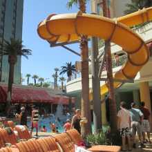 A popular hotel located in the middle of the Fremont Street Experience, this place is full of old school charm. Even though renovated, you feel history just walking through the place. You can't help feeling relaxed and groovy staying here. This is headquarters for the event. The best wing is the Gold Tower. They said sorry, no clothes in the pool :(